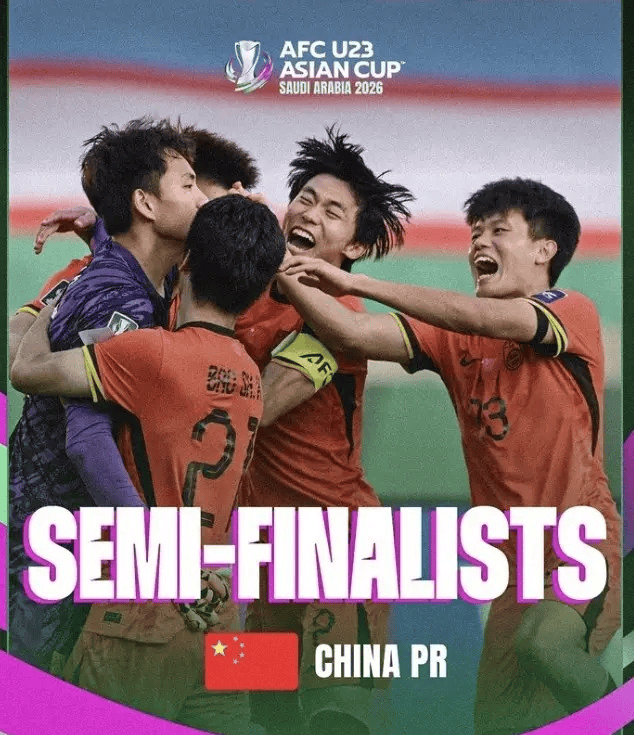 亚足联官方的一条社交媒体动态,让所有中国球迷心里暖了一下。在中国U23男足通过点球大战奇迹般地淘汰乌兹别克斯坦、历史性闯入亚洲杯四强后,亚足联特意更新社媒,晒出一张中国队的庆祝海报,并配文写道:“中国队现在处于杯赛冲锋的加速模式中。”